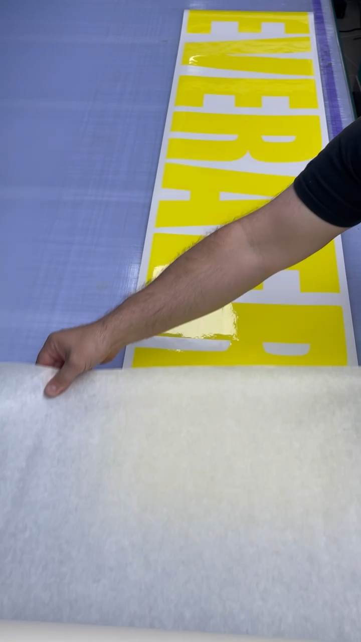 Example of yellow vinyl lettering. Bright, attention‑grabbing colour for promotions and safety messaging. Gloss polymeric film, colourfast and shrink‑resistant; perfect for glass, painted panels and smooth surfaces.