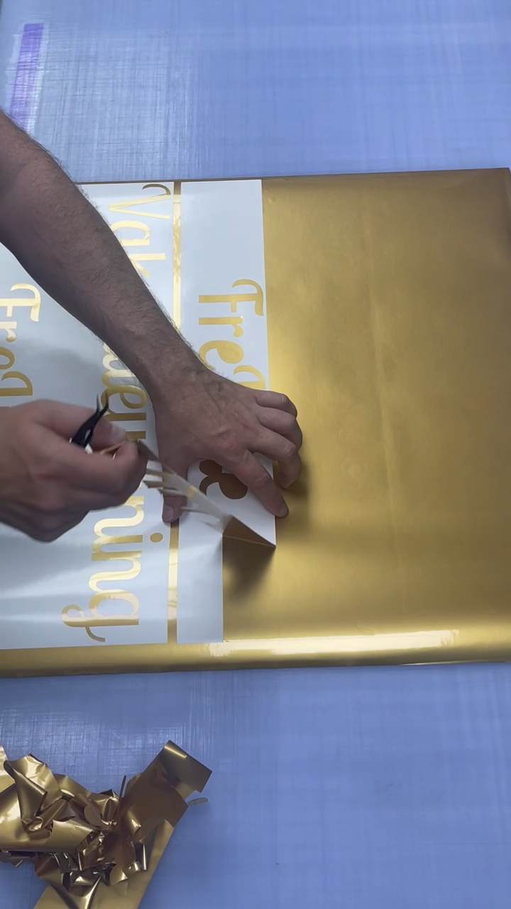 Example of metallic gold lettering. Premium look for logos and branding on glass, vehicles and boats. Weather‑resistant gloss film with crisp, background‑free edges for a professional, paint‑like finish.
